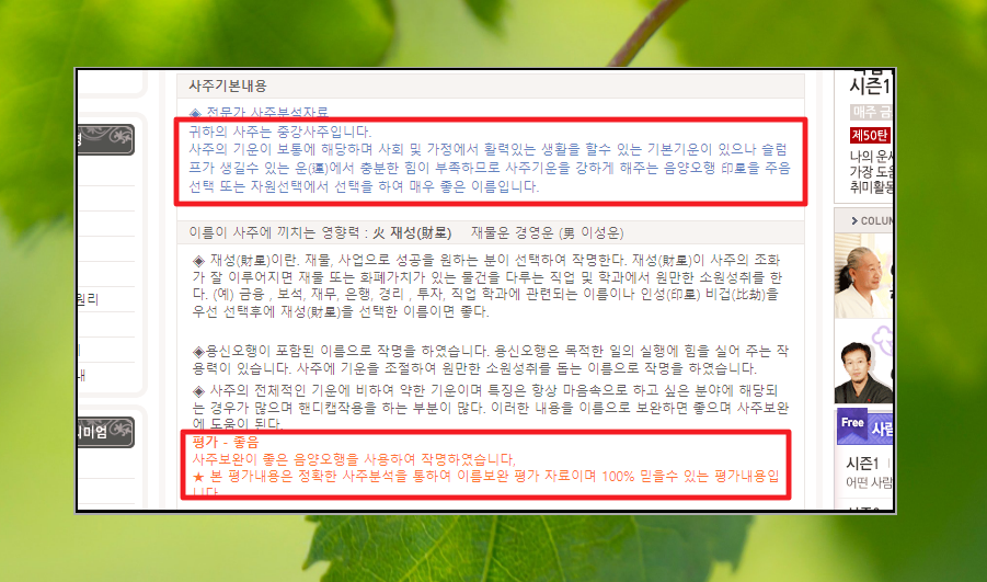 다음과 같이 사주와 성명학 이론을 기반으로 하는 한자 이름 풀이 서비스를 이용하면 2가지 유익한 점이 있습니다.