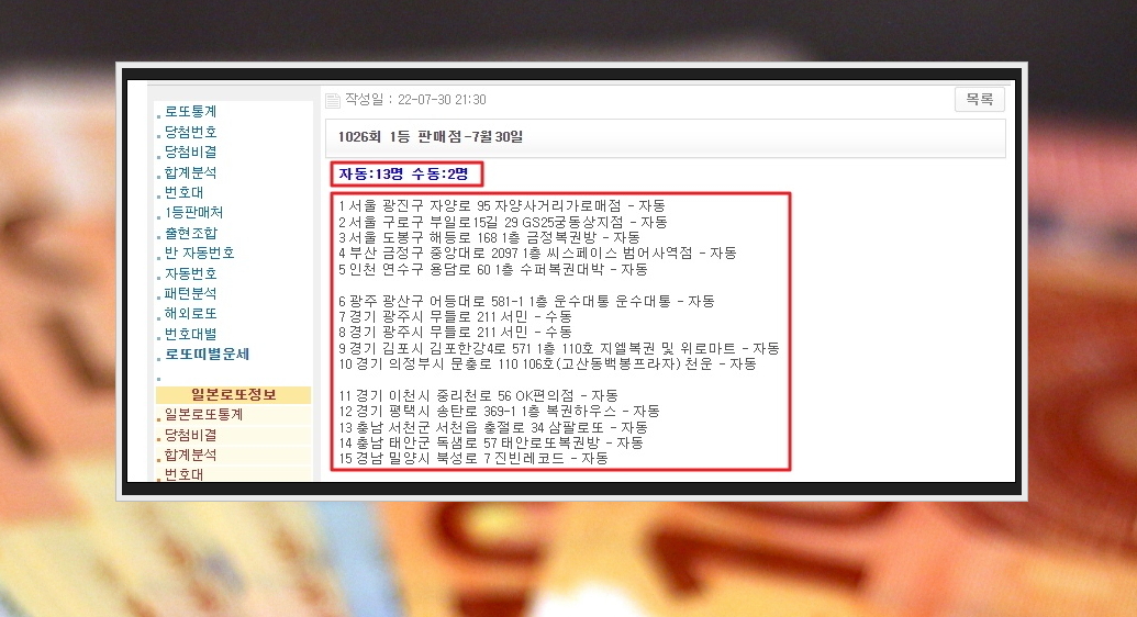 좀 더 스마트하게 노력을 하는 방법을 알려드리겠습니다. 로또1등 당첨지역과 번호에 관련된 통계를 활용한 것인데요. 어렵지 않습니다.