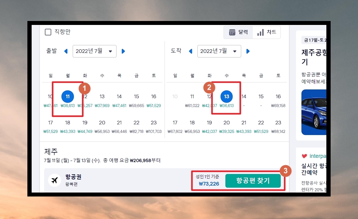 여행경비를 줄여줄 제주항공권 예약 가격 비교 방법 따라하기.