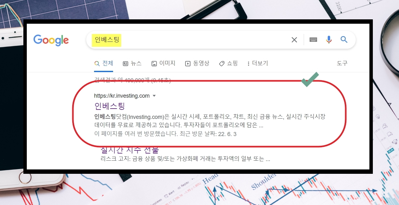 2. 제가 증권 종목 시세를 검색하거나 확인할 때 사용하는 사이트는 인베스팅 입니다. 보통 주식투자를 하는 분들은 매매를 할 때에는 증권사에서 제공하는 HTS나 MTS를 사용하고, 간편하게 시세 확인을 하고 싶을 때에는 인베스팅 사이트를 활용합니다. 국내외 지수나 환율 정보 등과 함께 개별 종목에 대한 시세를 편하게 볼 수 있기 때문이죠.
