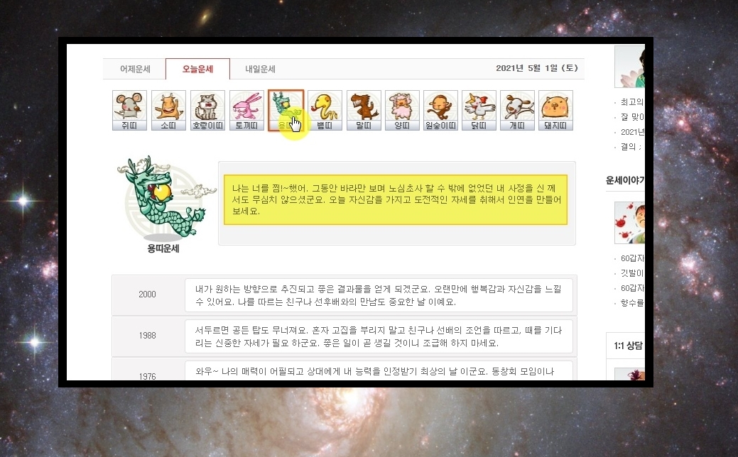 그럼 띠별 무료 운세 서비스를 여러 가지 알려드릴테니 이 중에서 마음에 드는 것을 선택하여 사용해 보세요.