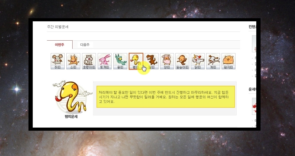 4. 주간 띠별운세를 통해 이번 주와 다음 주 나의 운수를 무료로 알아볼 수도 있어요.