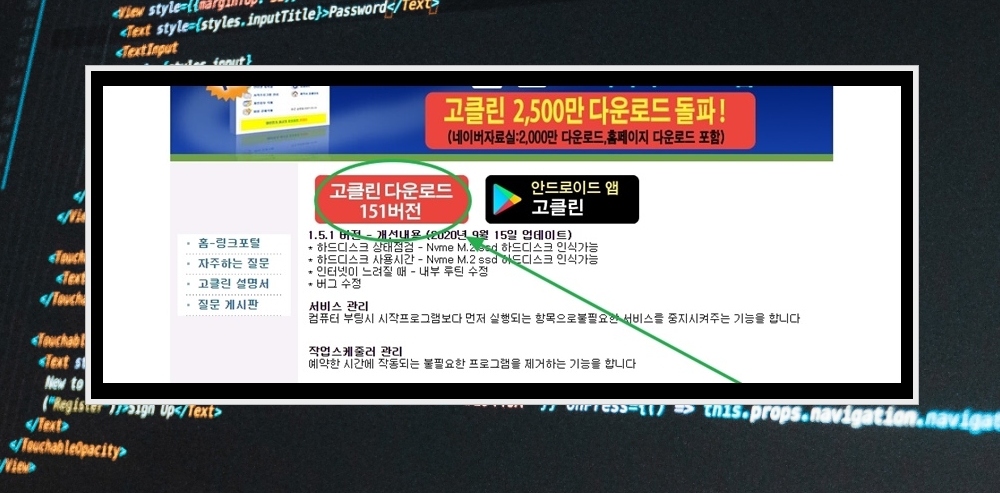 2. 고클린 공식 홈페이지에서 프로그램을 다운로드 받아 주세요. 2500만 회나 다운로드를 받을 정도로 신뢰할 수 있는 프로그램이 맞아요.