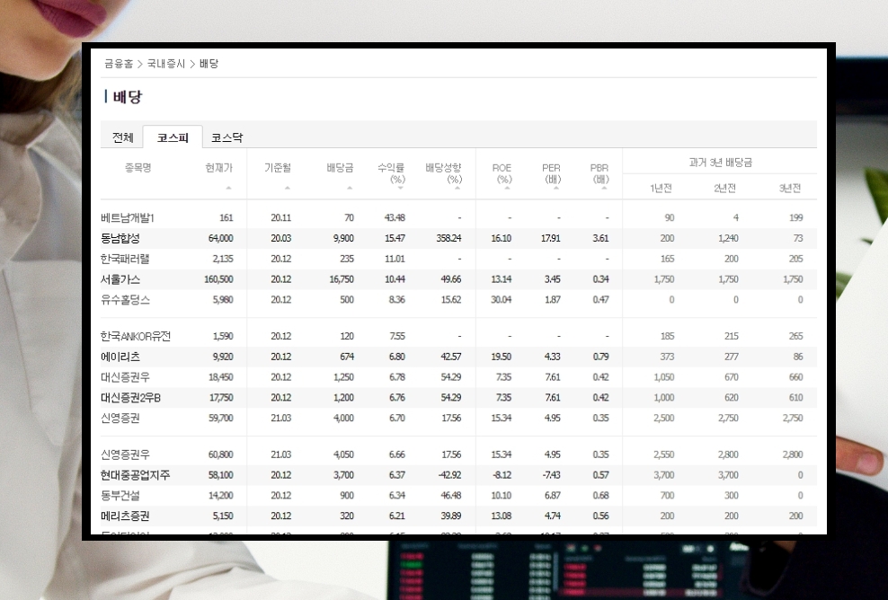 1. 현재까지 코스피 종목 중에서 일정 시기마다 상대적으로 많은 금액을 지급하는 종목을 살펴보았습니다. 단순히 금액이 높은 것이 좋은 것은 아니고요. 수익률이 높아야 해요. 그래야 자신이 투자한 금액 대비 받을 수 있는 배당금 액수가 늘어나기 때문이에요.