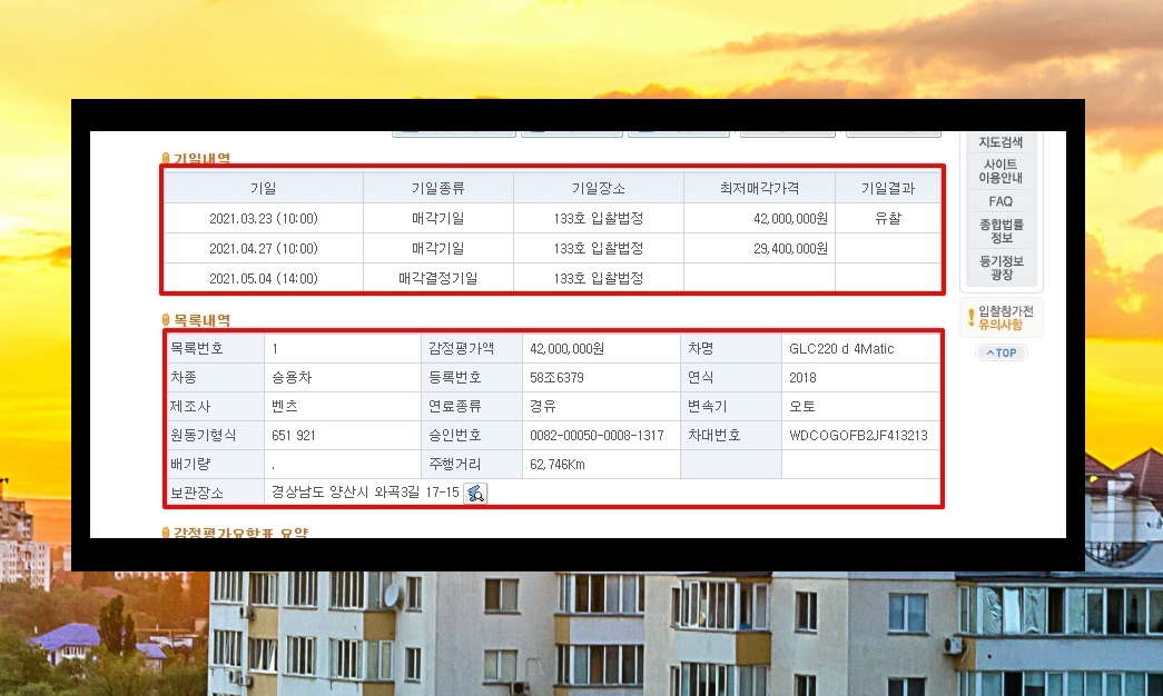 누구나 쉽게 법원 사이트를 통해서 다양한 종류의 경매 물품들을 바로 확인할 수 있습니다. 아파트부터 단독주택, 빌라, 자동차 등을 검색하여 원하는 것에 대한 상세한 정보를 조회해 볼 수 있는데요. 이런 방식을 통해 면밀하게 살펴볼 수 있습니다. 효율적인 거래를 진행할 때 큰 도움이 되죠.
