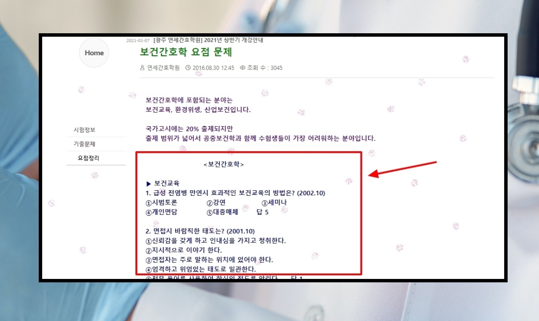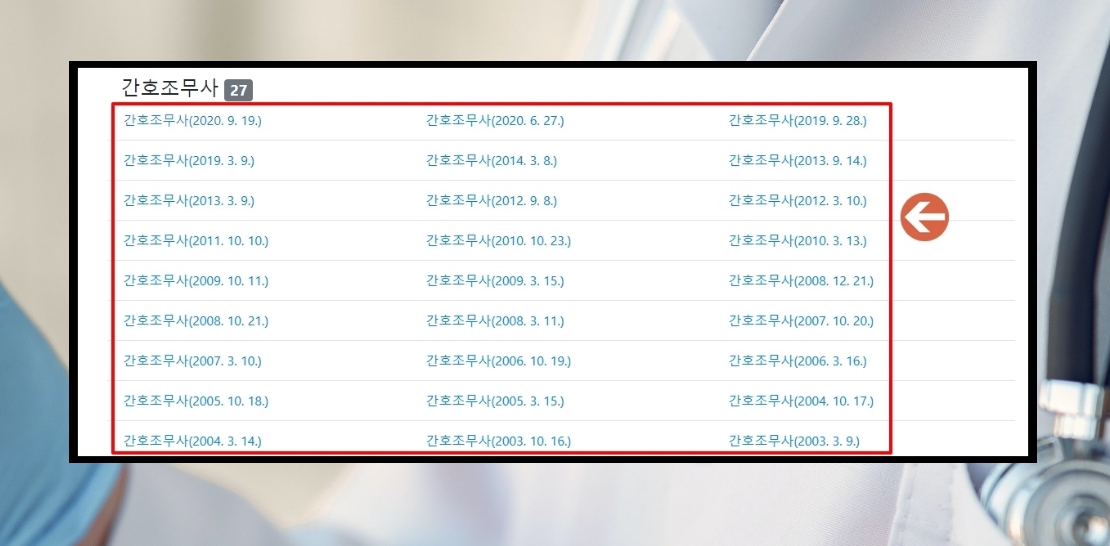 간단한 방법을 통해 인터넷 상에서 생각보다 많은 자료를 쉽게 얻을 수 있습니다. 여기에는 간호조무사 시험 기출문제 자료도 해당이 되는데요. 실전과 유사한 상황에서 문제 해결 능력을 연습하고, 시험에 대한 자신감을 쌓아가는데 큰 도움이 될 것에요.
