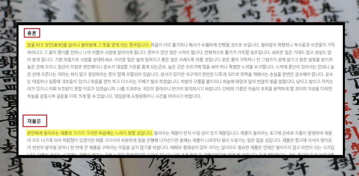 2023년 무료 토정비결 제대로 보기.