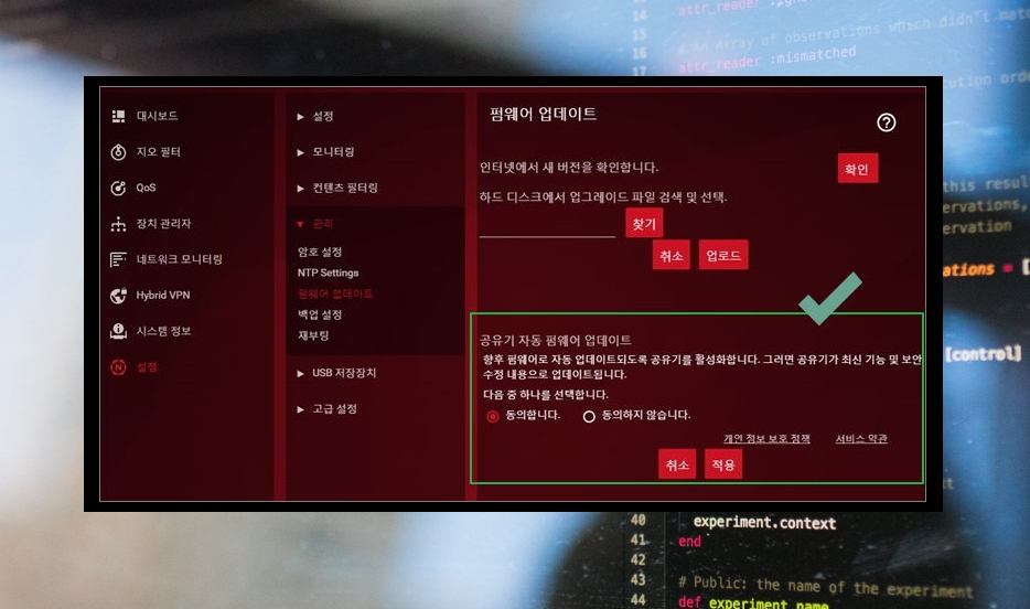 ▲ 공유기를 재부팅 했음에도 여전히 인터넷 속도 느려짐 현상이 고쳐지지 않았다면 펌웨어를 업데이트 합니다.