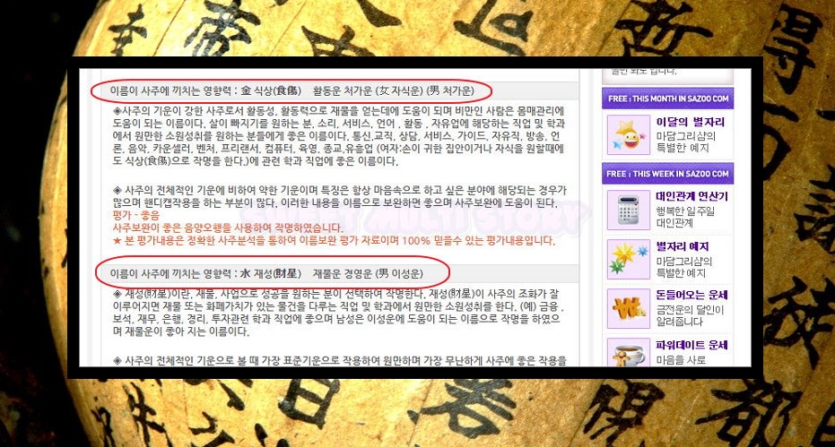 여기서 제공하는 서비스는 외자도 이용이 가능해요. 작명은 물론이고, 개명을 할 때에 사주의 특성을 살리고, 이에 도움이 되는 것이 좋다고 해요.