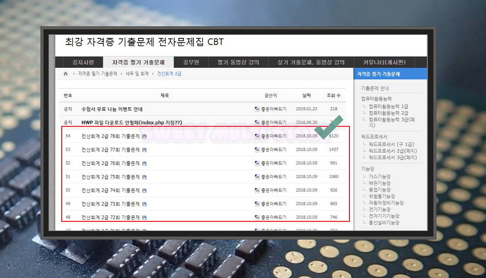 전산회계2급을 한 번에 합격하기 위해서는 기본서를 독파한 후 기출문제를 최대한 많이 풀어보는 것이 좋은데요. 따로 서적을 구매할 필요 없이 온라인 상에서 무료 다운 받을 수 있는 기출문제 자료를 이용해 보세요.