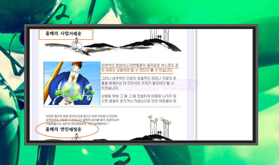 6. 2023년 사업을 하거나 새롭게 연애를 하는 분이 계실텐데요. 그런 분들은 올해의 사업거래운과 연인애정운을 살펴보세요. 사업을 진행할 경우 영업이나 마케팅 분야에서 운이 따른다고 하네요.