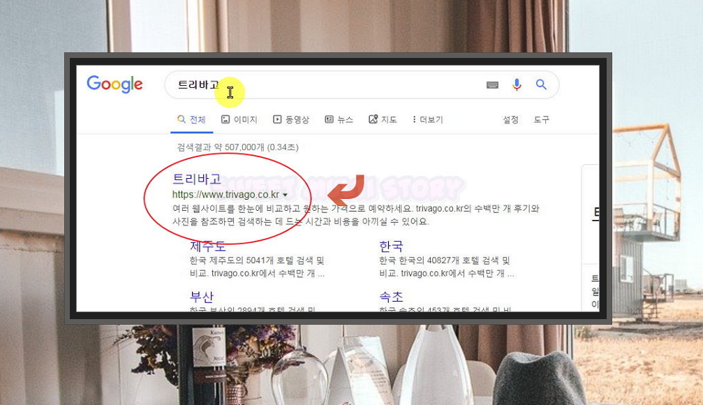 3. 저는 제주 여행을 갈 때 호텔 예약 트리바고 서비스를 이용해 보려고 해요. 우리가 입력한 내용을 바탕으로 여러 호텔이 나타났어요. 이 때 금액 표시가 원화로 나타나지 않을 수 있는데요. 그런 경우에는 홈페이지 우측 상단에 있는 통화 버튼을 눌러주세요. 그 다음 KRW로 변경하시면 돼요.