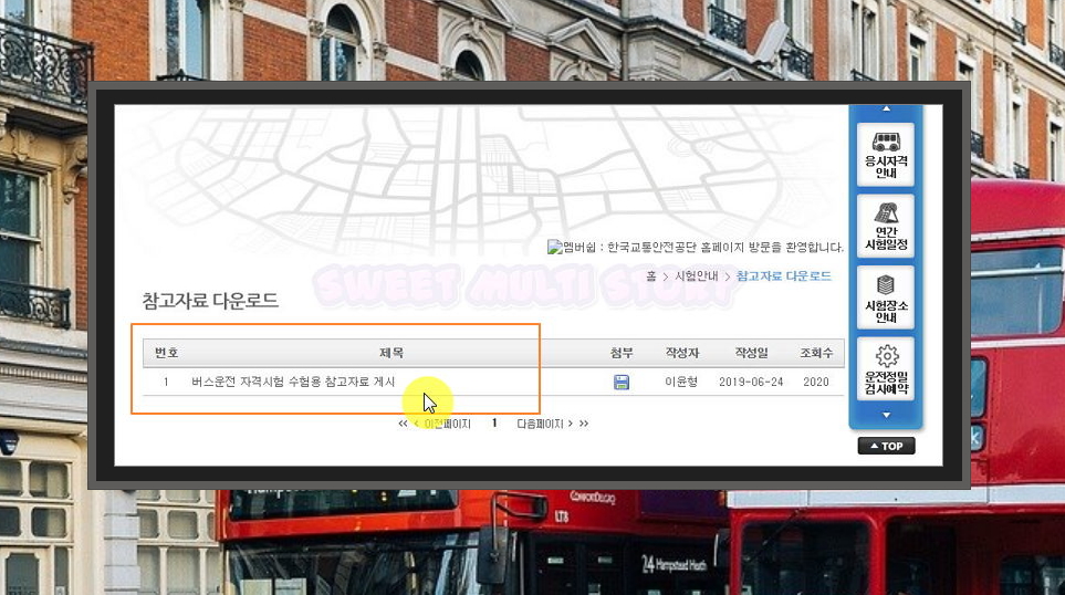 3. 참고자료 다운로드 게시판이 열리는데요. 여기에 버스운전 자격시험 수험용 참고자료 게시를 클릭해 주세요.