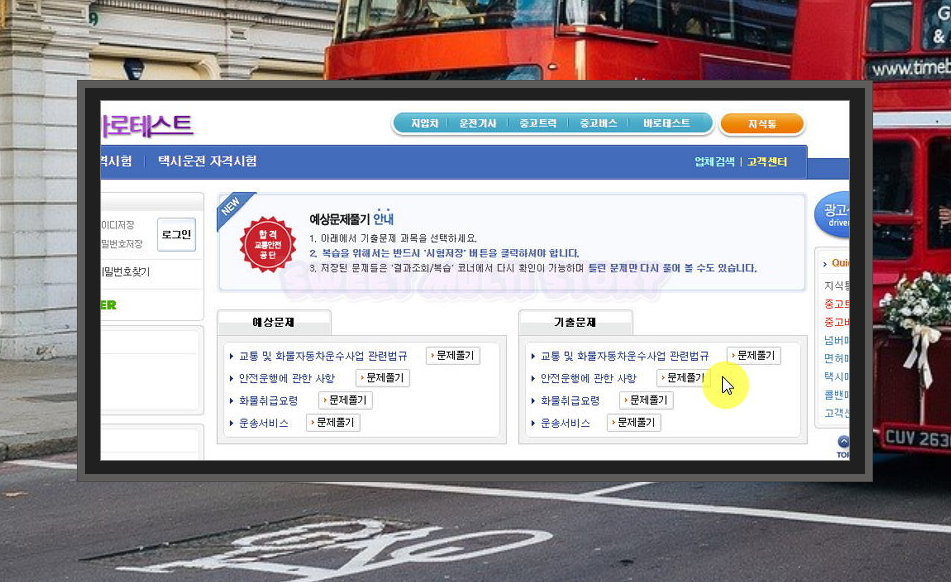 1. 버스운송 자격시험을 보기 위해서는 TS 한국교통안전공단 사이트에서 접수를 해야 하는데요. 이곳에서는 우리가 찾는 요약집 자료를 제공하고 있어요. TS 버스운전 자격시험 사이트로 접속해 주세요.