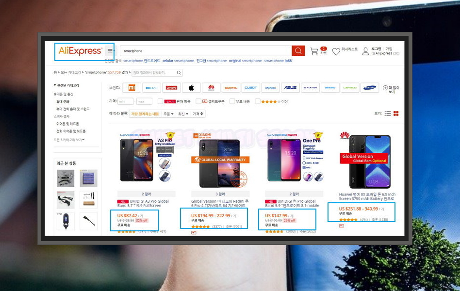 중국산 휴대폰의 경우에는 알리익스프레스에서 구매할 수 있는데요. 배송기간은 길지만, 무료 배송이에요. 공기계로 받기 때문에 사용하던 유심을 넣기만 하면 기존에 사용하던 요금제로 사용할 수 있어요.