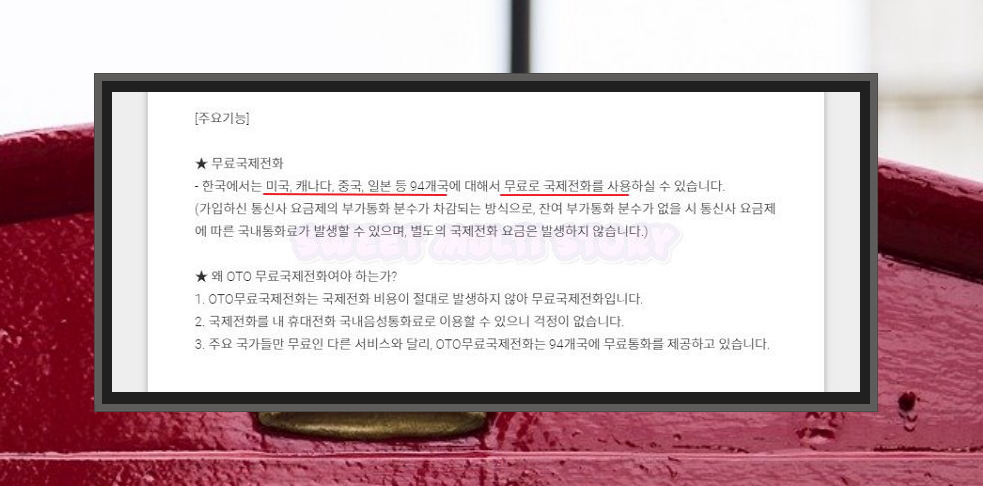 안내에 나온 주요 기능을 보면 어떻게 무료로 사용할 수 있는지 알 수 있어요. 보통 많은 분들이 통신사 요금제를 사용하는데요. 이 때 월마다 제공 받는 통화 사용량과 문자가 있을 거에요. 이러한 부가통화 분수가 남은 상태에서 해당 어플을 이용하여 국제전화를 걸 수 있어요. 물론 무료 국제전화 서비스를 이용한 만큼 부가통화 분수가 줄어들죠. 사용할 수 있는 부가통화 분수가 없는 경우에는 국내요금 정도가 발생한다고 해요. 일반적인 국제 통화 요금보다 많이 저렴한 수준이죠.