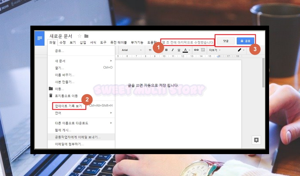 ③번 : 공유를 통해 다른 사람과 같은 문서를 동시에 작성가능