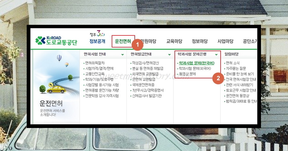 (2) 운전면허 학과시험 문제은행 페이지 접속