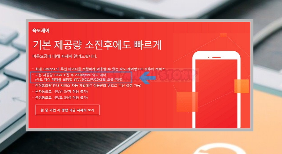 이용요금에 대한 안내를 자세히 보시면 아시겠지만, SK 에그 요금제의 기본 데이터 제공량인 10GB, 20GB를 모두 사용한 후에도 인터넷을 하실 수 있습니다. 물론 에그의 전송속도가 낮아지긴 하는데요. 동영상 재생이 아닌 웹서핑에는 무리가 없는 속도랍니다.