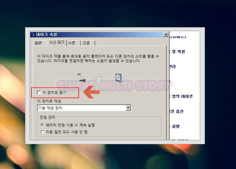 테스트를 완료하였으면 '이 장치로 듣기'를 해제를 꼭 해주세요.