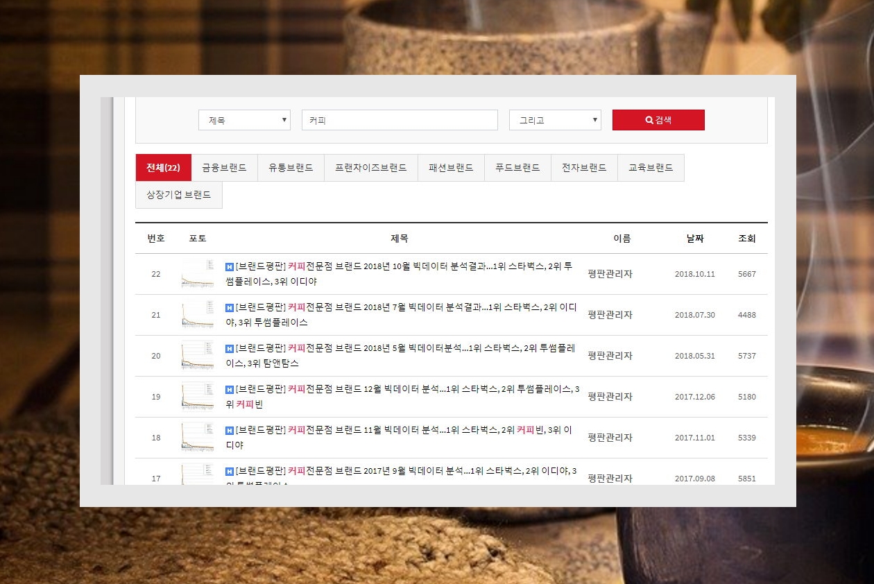 빅데이터를 가지고 커피브랜드순위 살펴보기.