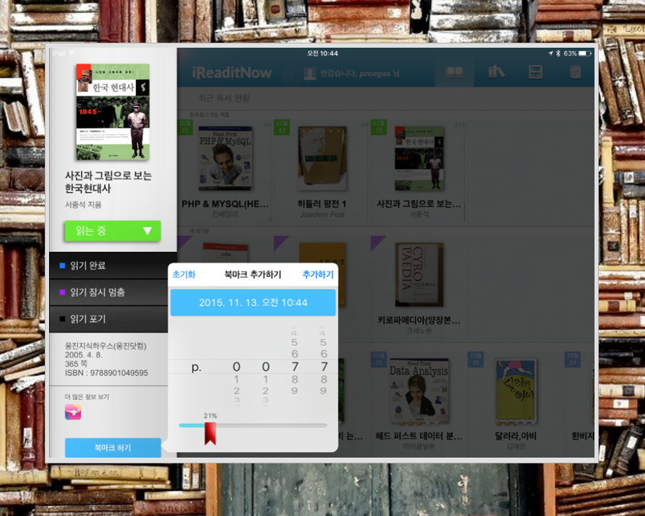 독서는 우리의 삶을 더욱 풍요롭게 만들어줍니다. 그런데 독서량이 많은 경우 관리가 쉽지 않습니다. 독서량과 독서했던 날짜, 중요한 내용 등을 파악하기 어려운데요. 이럴 때 iReaditNow HD 앱을 이용해 보세요. 제가 언급한 기능은 기본이고, 통계 자료 제공이나 독서 계획 세우기 등 여러 가지 서비스를 이용할 수 있습니다.