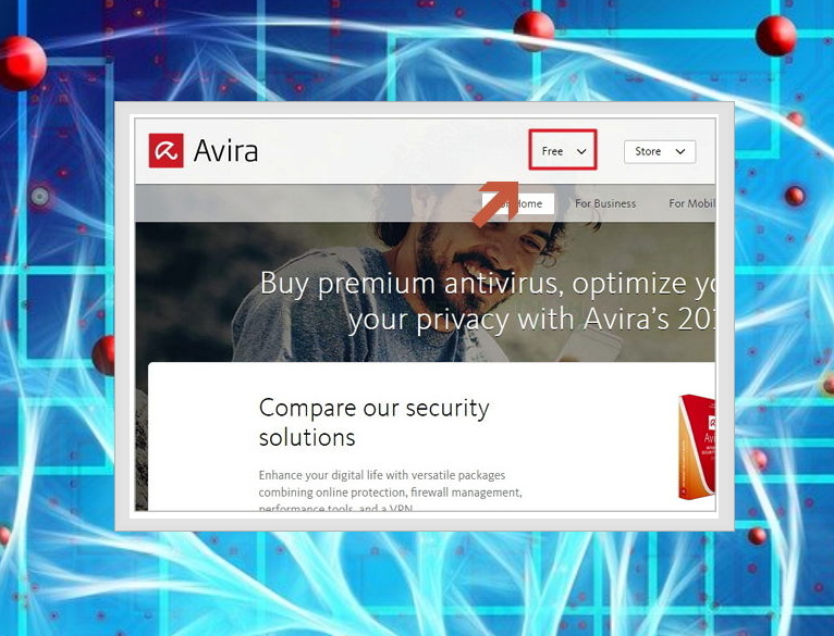 2. Avira의 공식홈페이지입니다. 메뉴에 보시면 'Free'라는 글자가 눈에 확띄이죠? 옆에 Store도 있는 것으로 보아 유료로도 판매하는 것을 알 수 있습니다. 아비라에서는 프리미엄 서비스를 추가하여 유료버전도 판매하고 있는데요. 개인이 사용하기에는 무료버전도 충분합니다.