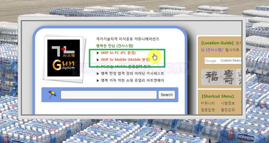 2. 건시스템의 경우에는 컴퓨터로도 이용할 수 있고, 스마트폰으로도 이용할 수 있어요. PC로 접속하셨다면 [SKIP to PC] 버튼을 눌러주세요. 스마트폰이라면 [SKIP to Mobile] 버튼을 클릭하면 되고요.