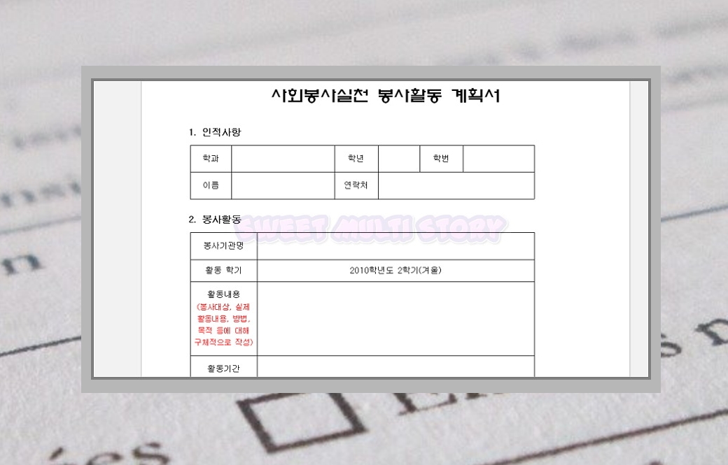 방학이 되면 학생들은 봉사활동 체험을 하기 위해 여러 곳을 지원하는데요. 개인적으로 이러한 일을 통해 사회 경험을 할 수 있어서 정말 좋았어요. 봉사활동을 할 때에는 계획서와 확인서를 꼭 작성하는 것이 좋은데요. 기관에서 해당 양식이 없다면 제가 공유해 드린 양식을 이용해 보세요. 무료로 사용할 수 있습니다.
