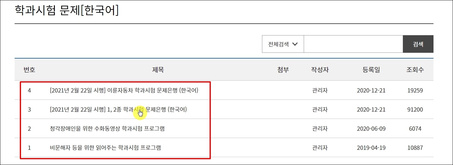 우리가 이용할 수 있는 운전면허 필기시험 예상문제 자료가 여러 가지 나타나는데요. 여기에서 보통 1종과 2종을 준비하는 분이라면 3번 게시물을 선택하면 돼요. 청각장애를 가지신 분들은 2번 게시물인 수화동영상 프로그램을 이용하면 되고요. 비문해자인 경우라면 1번 게시물인 읽어주는 프로그램을 이용하면 돼요.