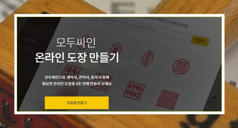 제가 자주 이용하는 곳은 모두싸인입니다. 컴퓨터로 사용할 수 있는 도장을 쉽게 만드는 것이 가능해요. 무료로 제공하는 프로그램이니까 부담 없습니다. 또 한 가지 컴퓨터에 프로그램을 설치할 필요도 없습니다.