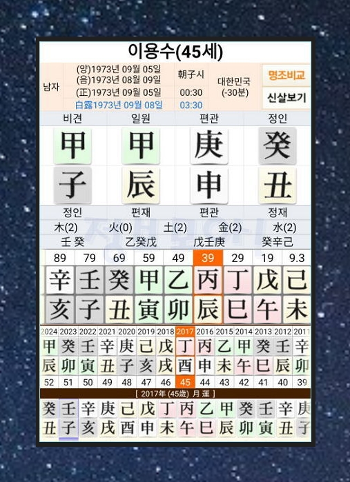 간편하게 만세력 다운로드를 하고 이용하는 것까지 보여드렸는데요. 제가 알려드린 프로그램에서는 명조비교와 신살보기도 가능합니다. 재미있게 보시고 새해에도 행운 가득하시길 바랍니다.