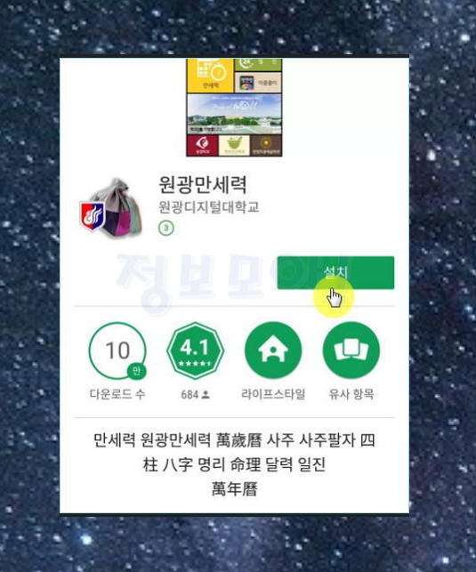 기본적으로 화수목금토 이렇게 오행은 만세력을 구성하는데요. 이 오행이 어느 쪽에 많냐에 따라 당사자의 운의 방향에 큰 영향을 줍니다. play 스토어에서 설치 버튼을 눌러 만세력 다운로드를 해주세요.