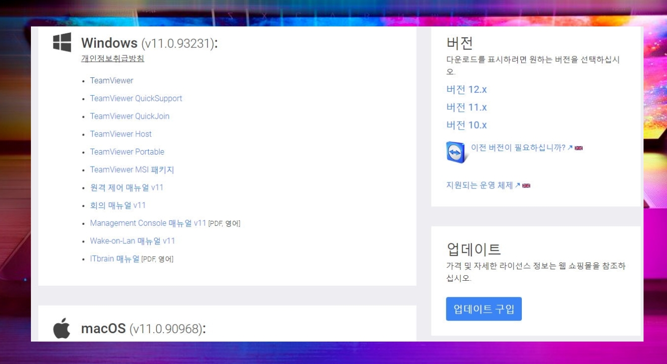 최신버전이 아닌 팀뷰어11이 필요한 경우에는 해당 버튼을 눌러주세요.