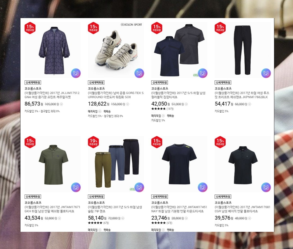 ▲ 그럼 886개의 코오롱스포츠의 이월상품을 만나볼 수 있는데요.