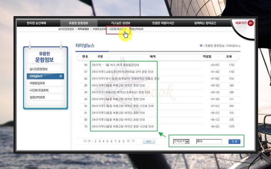 여수 여객선터미널 배시간표 알아보기.