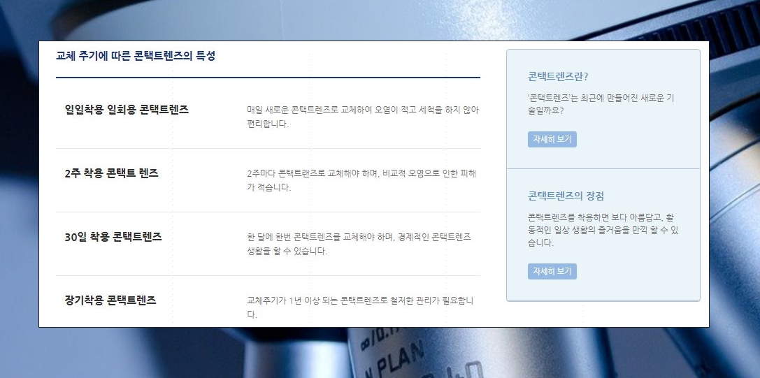 오랜 기간 렌즈를 사용해본 분들은 아시겠지만, 정말 관리하기 어렵습니다. 그렇기 때문에 어느 정도 사용하다가 1회용으로 바꾸는 경우가 꽤 많죠.