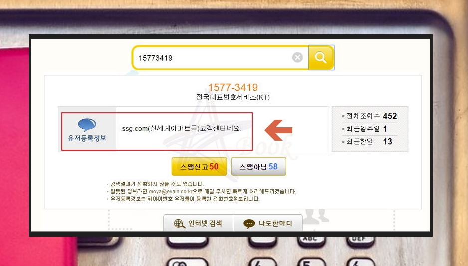 사이트에 접속하면 전화번호 검색을 할 수 있도록 되어 있어요. 정확하게 번호를 입력해 보세요.
