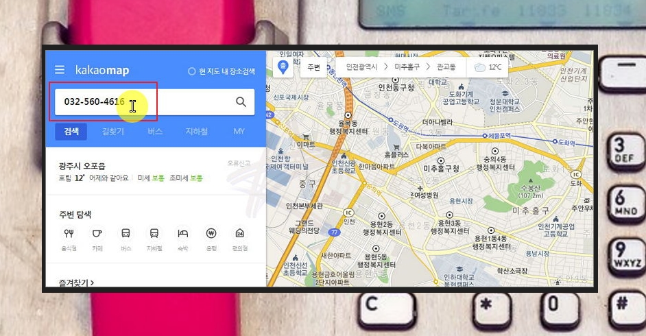 보통 카카오맵 사이트를 이용할 때 건물 이름이나 주소를 입력하는데요. 여기에 모르는 전화번호를 입력해 보세요. 그래도 검색이 돼요.
