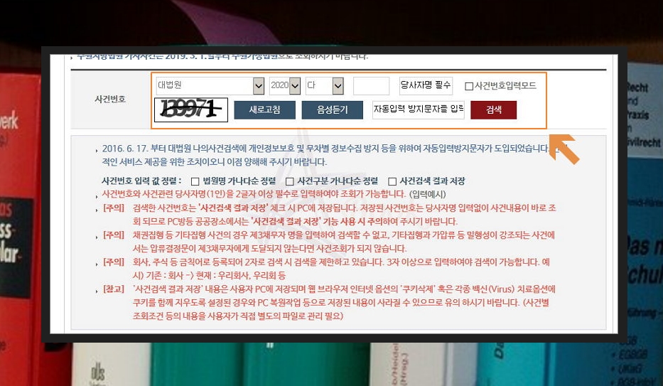 사건번호를 알고 있는 경우에는 공인인증서 없이도 나의사건을 검색할 수 있어요.