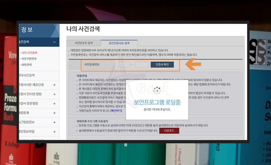 많은 분들이 인터넷 뱅킹을 이용할 때 사용하는 공인인증서를 사용하는데요. 그 때 사용하는 인증서를 가지고 대법원 사이트에서도 본인 확인용으로 사용할 수 있어요.