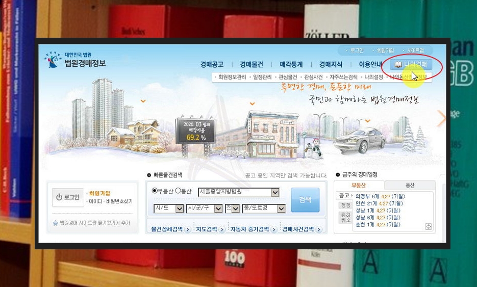 나의 경매사건의 경우에는 대법원 법원경매정보 사이트에서 검색을 해야 하는데요. 사이트에 접속해서 맨 우측에 있는 메뉴인 [나의 경매]를 클릭하면 쉽게 찾아볼 수 있어요.