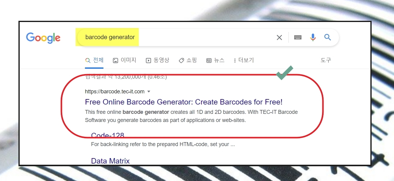 바코드 생성방법을 따라하기 위해서 가장 먼저 해야 할 일은 사이트 접속입니다. barcode generator를 검색하면 쉽게 접속이 가능합니다. 이곳의 주소 이름은 barcode tec it 인데요. 주소창에 입력하는 것보다 검색을 통해 접속하는 것이 더 편할 겁니다. 영어로 되어 있지만, 사용 방법이 어렵지 않기 때문에 누구나 이용이 가능합니다.