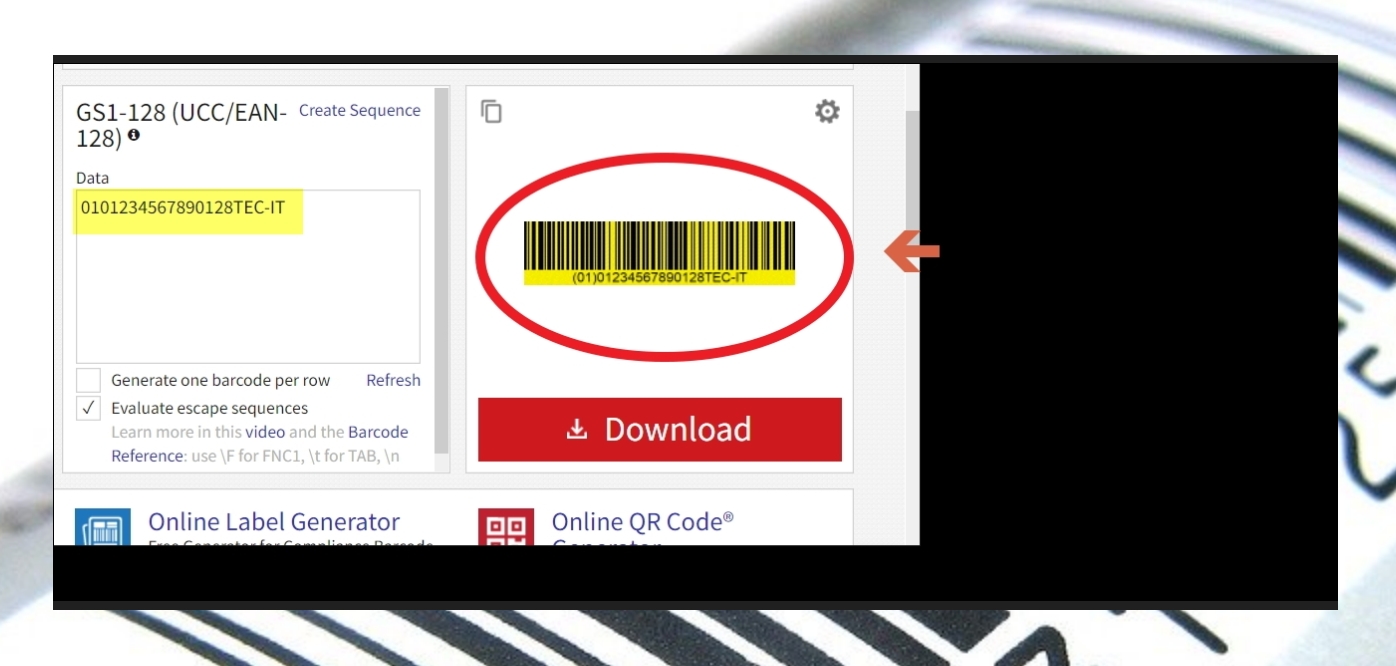 만들고자 하는 코드 종류를 선택했다면 다음에 할 것은 내용을 입력하는 것입니다. Data 부분에 내용을 입력해 보겠습니다. 그럼 바로 오른편에 생성이 된 바코드 이미지를 확인할 수 있습니다. 여기에서 [Download] 버튼을 누르면 이미지 파일로 다운 받을 수 있습니다. 여기에 더하여 결과물 이미지 우측 상단에 있는 [톱니바퀴] 모양의 버튼을 클릭해 보겠습니다.