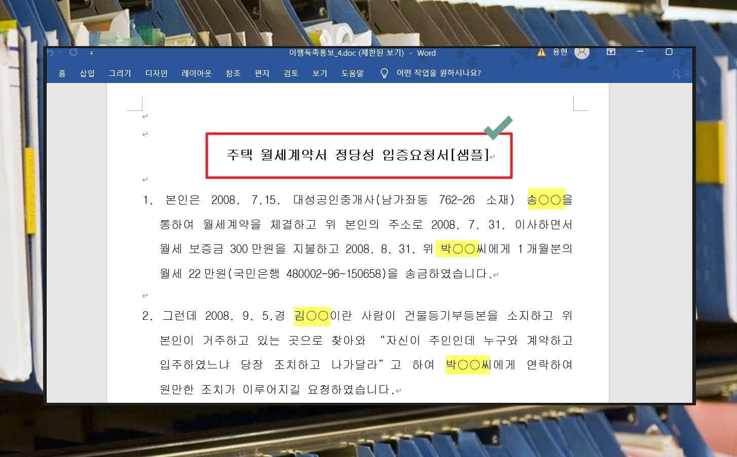 앞서 보여드린 자동차 매매계약 해약통고서와 더불어 주택 월세계약서 정당성 입증요청서를 열어보았습니다. 샘플 형태로 상당 내용이 작성되어 있습니다. 내용증명을 작성할 때 참고하기에 정말 좋습니다.