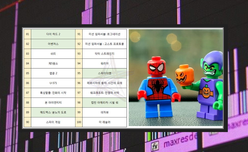 저는 장르를 가리지 않습니다. 어떤 장르라도 완성도가 높고 재미가 있으면 매우 만족하는 반면에, 그렇지 않으면 보다가 졸기도 하죠. 그나마 좋아하는 장르를 뽑으라면 액션인데요. 신뢰할 만한 자료를 통하여 100가지 순위를 뽑아보았습니다. 여기서 제가 직접 보고 추천할만한 작품을 알려드릴게요.