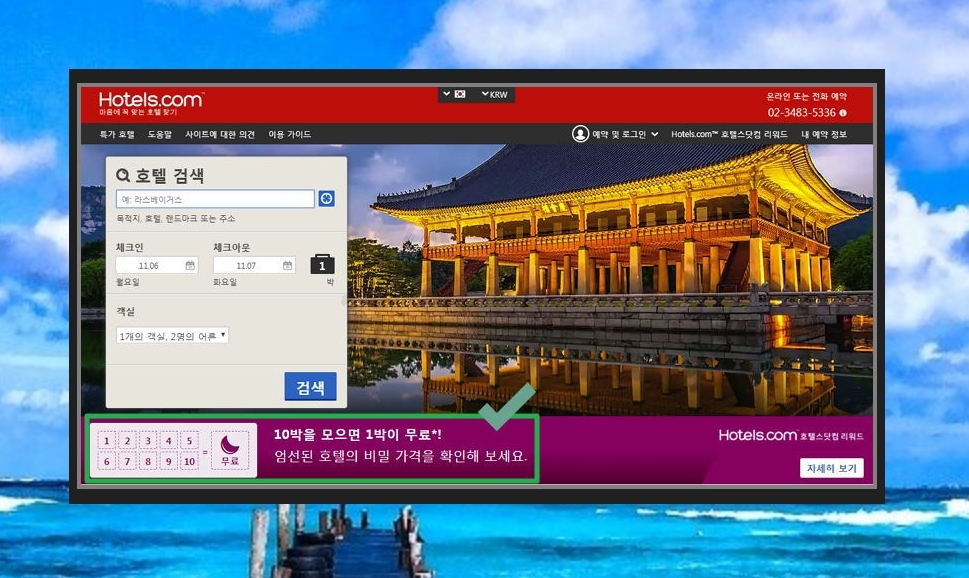 미국의 경우에는 호텔스 닷컴이 좋습니다. 왜냐하면 미주 지역부터 시작한 숙박 예약 사이트이기 때문인데요. 10박을 모으면 1박을 무료로 이용할 수 있기 때문에 여행을 즐겨 하시는 분이라면 숙박에 대한 혜택을 받기 쉽습니다. 많은 미국 숙소의 정보를 가지고 최저가로 예약을 해보세요.