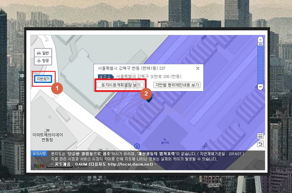 알아보고자 하는 지역에 대한 정확한 주소를 알고 계신다면 ②번 바로가기 서비스를 이용하시면 되고, 아니면 ①번을 통해 지도에서 찾아보거나 카테고리를 이용해서 도시계획 확인원 무료열람을 할 수 있답니다.