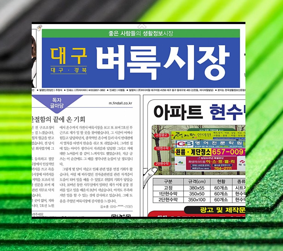우리 동네 소식을 가장 빨리 알려면 어떤 방법이 좋을까요? 요즘 같이 동네에 누가 사는지 모를 정도로 교류가 없기 때문에 동네 사람들로부터 정보를 얻기 어렵습니다. 각자 하는 일 때문에 바쁘기도 하고요. 그럴 때 유용한 것이 벼룩시장 입니다. 지면을 보면 아시겠지만, 글자가 빼곡하죠. 알뜰정보, 중고 거래, 부동산, 일자리 등 생활에 필요한 정보가 가득합니다. 대구에 사신다면 대구 벼룩시장을 이용하시면 되는데요. 종이로 되어 있는 신문이 편하죠? 벼룩시장에서는 신문그대로보기 서비스를 제공하고 있습니다. 인터넷이 되는 곳이라면 어디서든 컴퓨터로 볼 수 있어요.