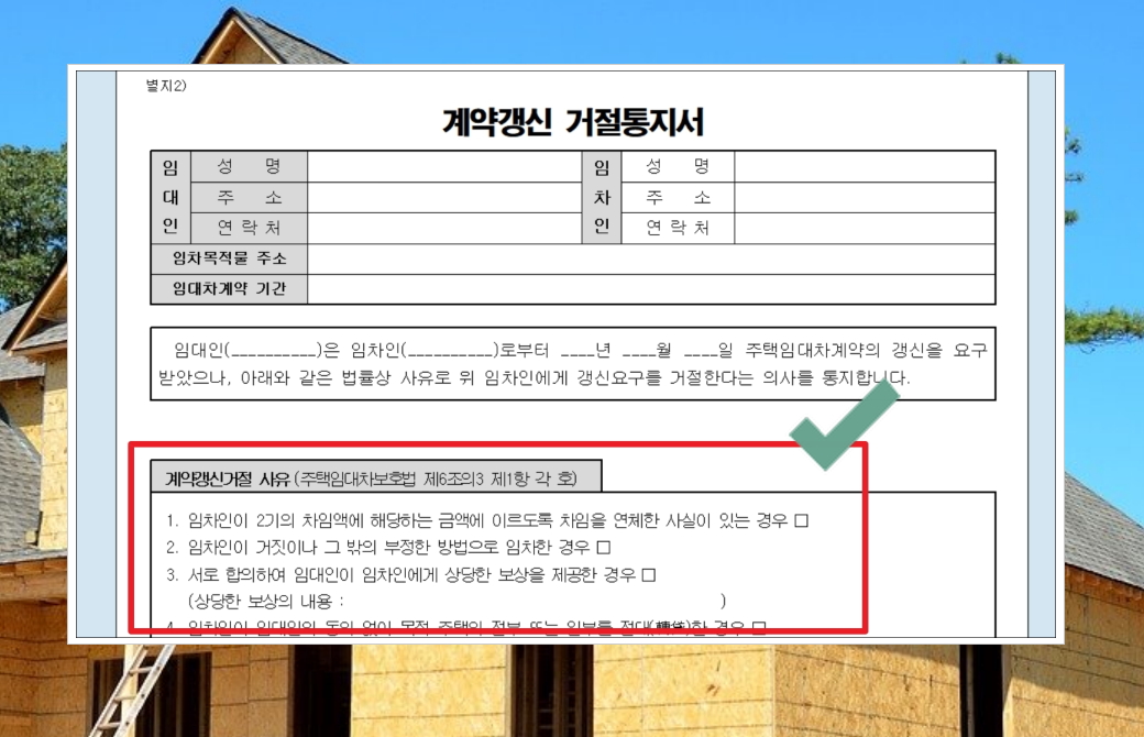 부동산 임대차 계약서를 작성할 때 계약갱신거절 사유에 해당하는 일이 발생한다면 이에 대한 거절을 할 수 있습니다. 이런 일을 쉽게 진행할 수 있도록 통지서 양식도 무료로 제공되고 있어요.